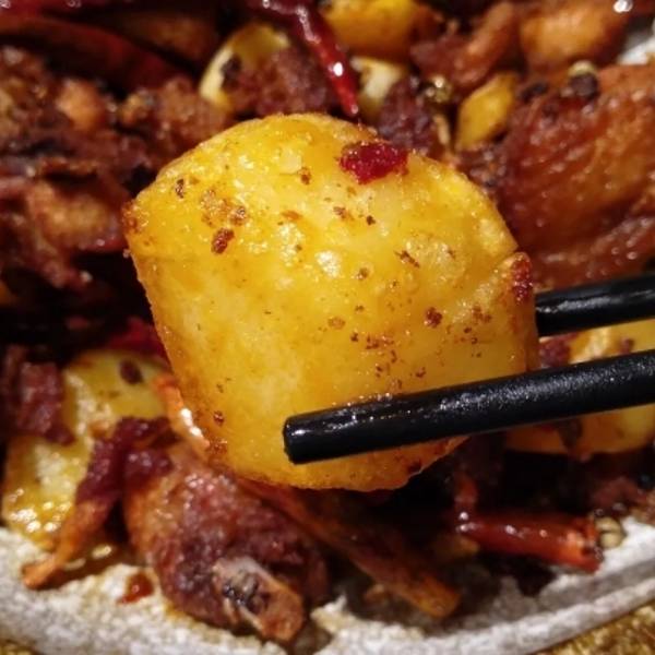 - 还配有当地炸的金黄色的土豆香味浓郁夹着一丝甜口,超级好吃秘制雪山鱼店里招牌之一