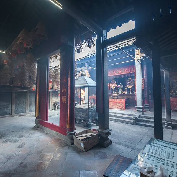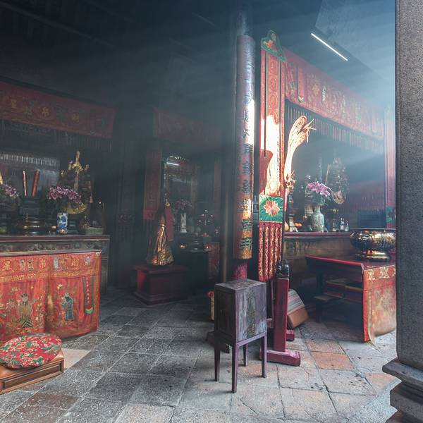 下午的阳光通过屋顶的缝隙洒在庙宇内,形成了禅意绵绵的景象,其实这个景象也就是我们常说的丁达尔光现象,在澳门氹仔北帝庙会经常看到这样的现象,非常漂亮也非常令人感到新鲜。所以来到澳门氹仔岛逛一逛这北帝庙是比较值得的。