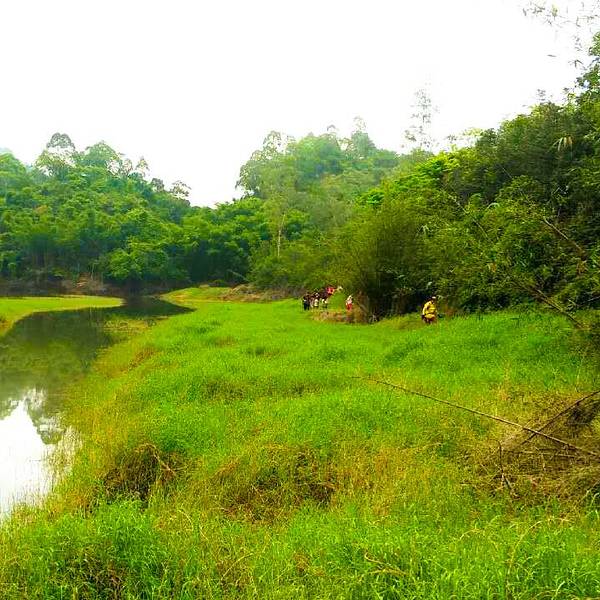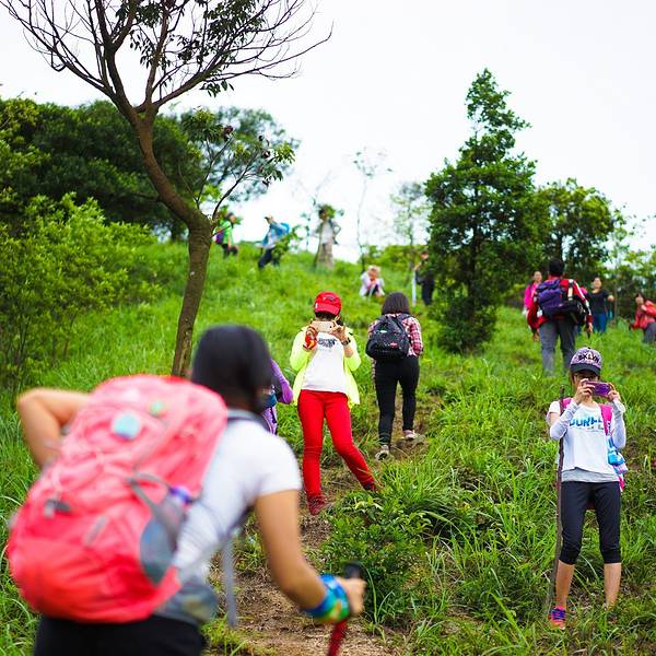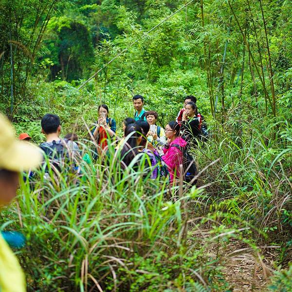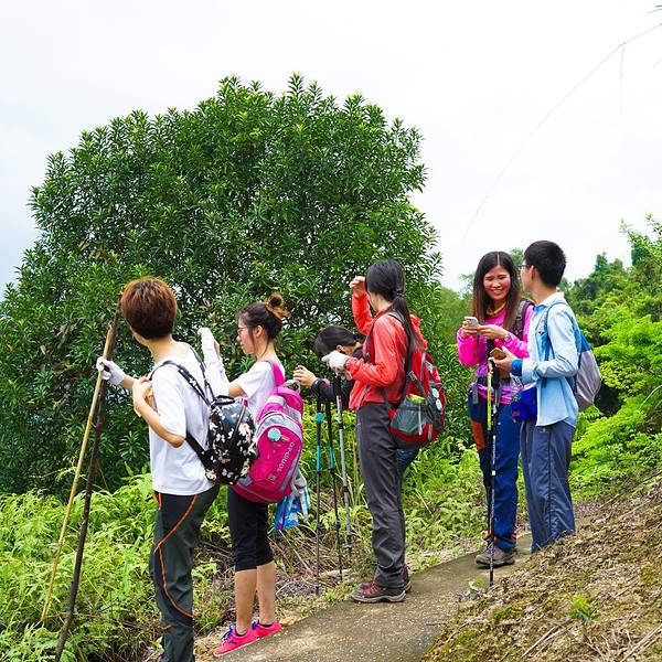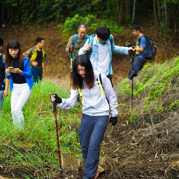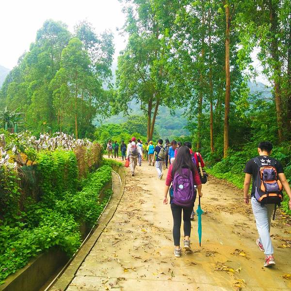 2016.04.23 阴天 7点10分左右,来到了集合地点客村地铁站C出口。这里已经人山人海了,今天是32号的会员活动日,多条线路的队员都在这里集合出发。遇到了熟悉的小伙伴小秋,他去牛塘山。还看到了吴大侠,她今天带队去通天蜡烛。 这里推广下32号的会员日活动吧。每个月第四个星期的周末就是活动日,所有线路都是32元。从小伙伴的角度考虑,花32元就能去玩一天,确实是很优惠的。至于“32号”名字,是希望每个月31天能多出1天来感受大自然,领悟大自然。 8点15分,大巴出发了。到中山其实挺近的,大概1个半小时就能到了。 呵呵哒和小北两个领队从广州带队出发,另外一个领队龙猫,则在中山下车点和我们汇合。 很快的,街坊们的自我介绍开始了。今天队伍的男女比例,还是女生为主,其中不乏很多第一次参加户外的小童鞋。还有一个7岁的勇敢小男生。 很顺利的到了中山神湾镇,大家下车后就跟着领队开始徒步。