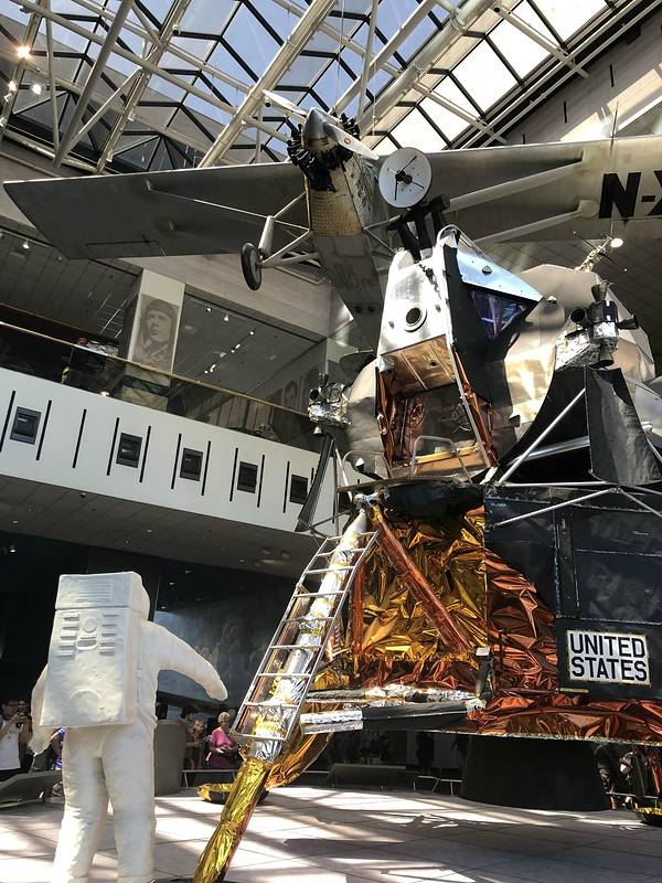 美国国家航空航天博物馆就坐落于国家广场南侧,隶属史密森尼学会,展馆占据了整整三个街区,24个展厅汇集了大量具有里程碑意义的飞行器、太空探测器等,同时也是研究航空航天、行星科学、地球科学的历史和科学研究中心。