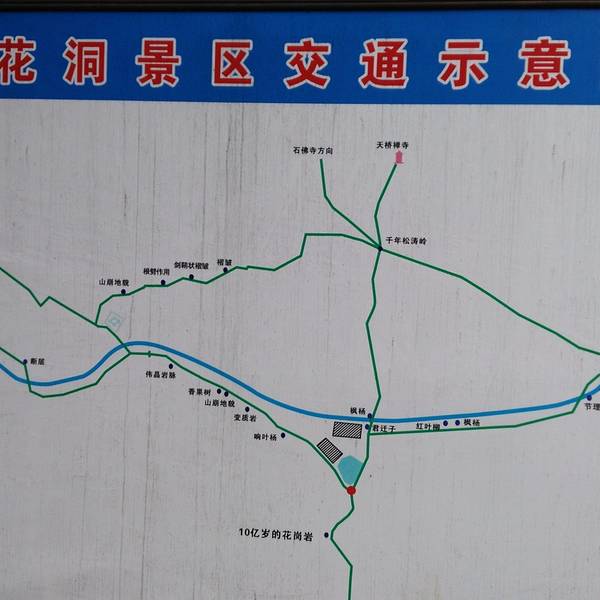 桃花洞宽丈二、高九尺,深逾七丈,深处有井叫“龙池”。东壁有“观音洞”,供有石雕观音和十八罗汉;北有“孙膑洞”,上下两层,纵深数丈,传说孙膑曾在此著书立说;南有“锣鼓洞”,在洞中击石,声如锣鼓,奇妙异常。桃花洞前的普化寺,是中原标准的窟寺文化代表,已有260多年的历史,峡谷底巨石磊磊,溪流叮咚,是澧水的源头,流入长江。桃花洞一溪连三潭,下有桐柏著名的“仙人摆布”景观,其间的神话传说,更是妙趣横生,内有天桥寺、铁佛寺“汉蛟望淮”等景观。阳春三月,桃花洞前漫山桃花盛开,花红十里,香溢满谷,宛若朝霞,瑰丽妖娆。“桃洞铺霞”为桐柏明清古八景之一。