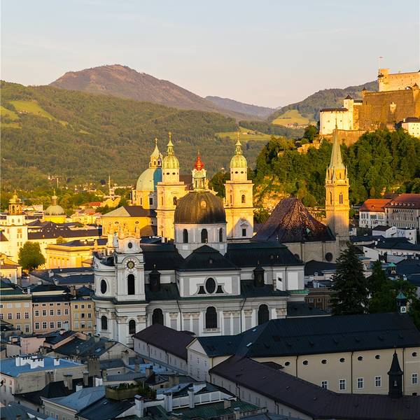 从德奥边境回到萨尔兹堡正是夕阳西下,金光漫天的时分。我们登上僧侣山,望着远处的要塞被黄昏染上了一座金冠。我一直觉得萨尔兹堡是个很调皮的城市。如果你行走在它的大街小巷,你不会觉得这个城市有多么的惊艳...