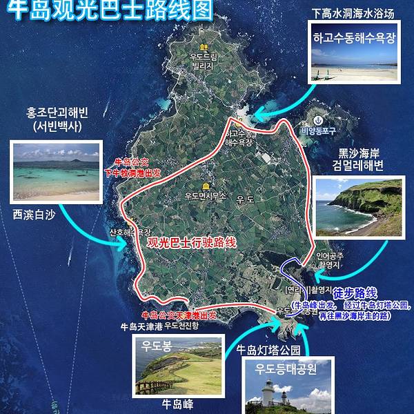 牛岛位于济州岛北部,是一个很小的海岛,有四个主要景点。乘坐这个环岛巴士可以绕岛一周,并经过全部主要景…