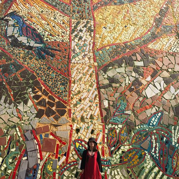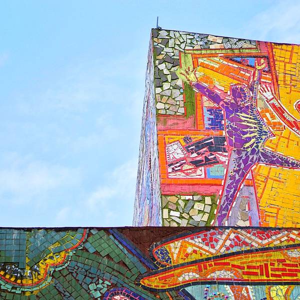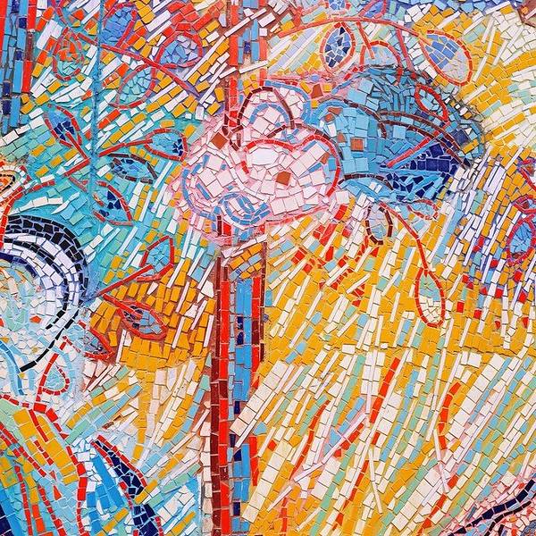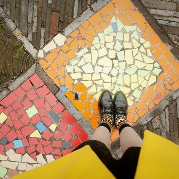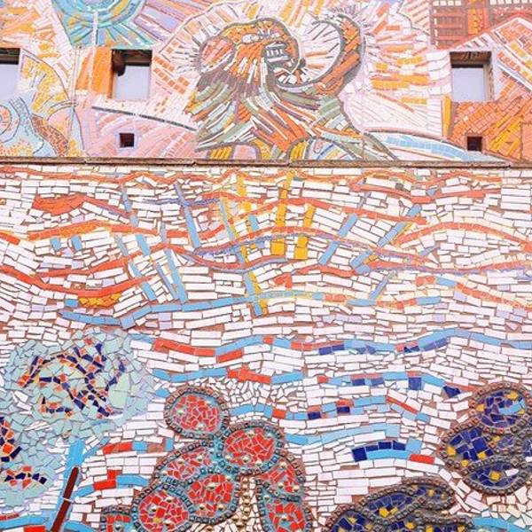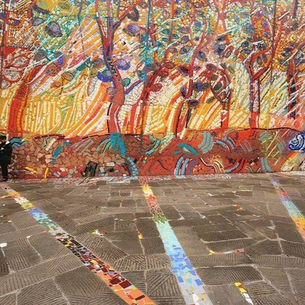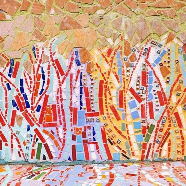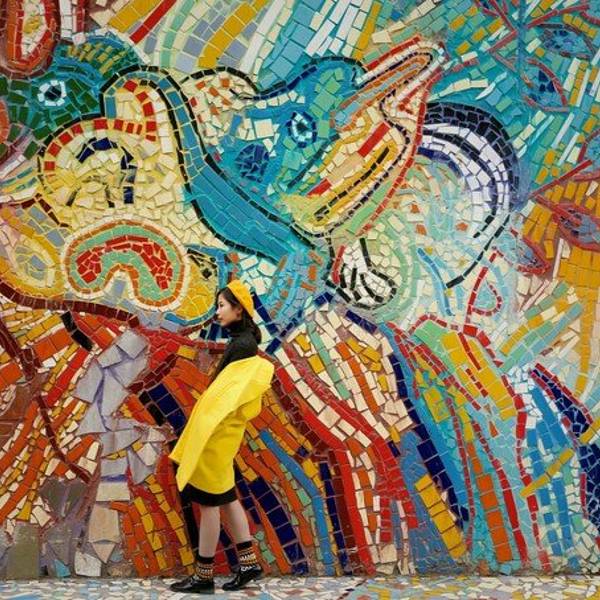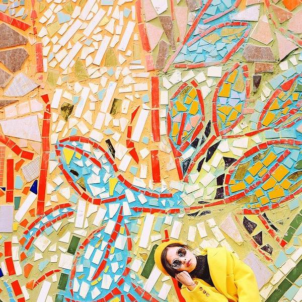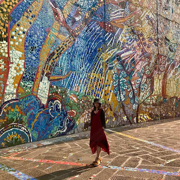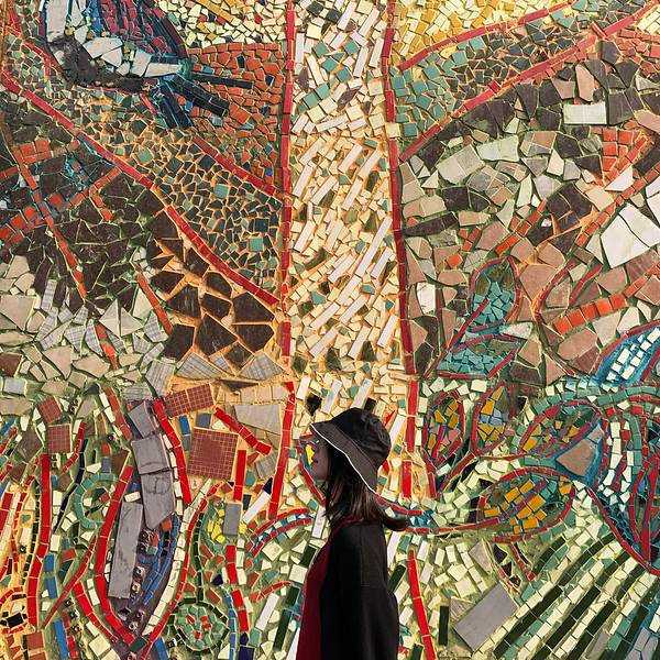 细细看这一片浑然一体的彩色瓷砖墙。