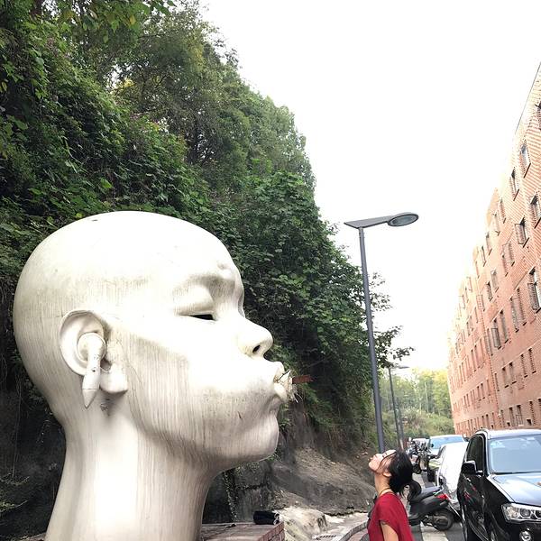 还有一大遗憾是:罗中立美术馆周一闭馆!闭馆了.......呜呜呜,我也是好忧伤的,怎么就没有人告诉我周一闭馆的!唉……这里有一大片不知道什么建筑物,看起来感觉有少少奇怪,挺独特的吧!天公不作美,拍照不好看,一闪而过吧。比较有特色的雕塑系~~