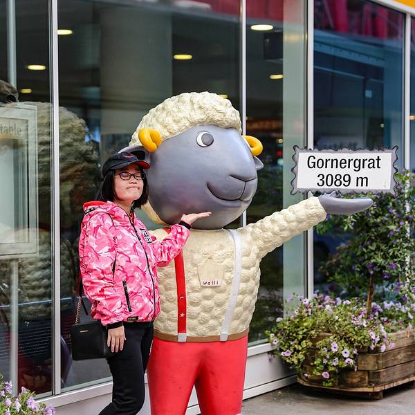 基本每隔两辆去采尔马特的火车,就有一辆是观景列车,整个车厢采光非常好,特别是上面的小窗口,可以随看到高耸的雪山,下次来瑞士,一定要再坐一次冰川线,享受一次在冰川中穿行的感觉。 到了采尔马特,已经是下午四点多了,天气并不算很好,小镇海拔很高,所以显得有点清冷,毕竟进小镇的火车一个小时一班,而我们这班一共也就两个车厢。火车站对面就是齿轮小火车的车站,通往Gornergrat观景台,采尔马特的吉祥物黑脸小羊为他代言。车站门口停着不少电力的出租车,因为采尔马特禁止燃油车进入,所以不管出租车还是酒店的接送车,都是这样的电瓶车,哪怕是一些运货的火车,也是用的电瓶,真是个绿色的小镇。由于觉得酒店很近,我们准备步行去酒店,顺带看看路上有啥好吃的小店,走了一般,路上下起了小雪,2017年秋的第一场雪,比以往时候来的都早一些。步行五分钟就到了酒店,很有设计感的一家酒店,全部原木和石头装饰。前台有一个大火炉,到了晚上,这个火炉就会点燃,让冬夜的采尔马特显得特别温暖。酒店的房间都有个小阳台,楼层高的可以直接看到马特洪峰,但像我们楼层低的,只能看到河对岸的阳台了。整个房间都是一样的极简的设计风格,卫生间也很大。放完行李,当然要出门小逛了,午饭吃的不多,门口一家很棒的面包店,不得不说瑞士的可颂做的实在太棒,吃了几家都很完美。采尔马特的公交站台,其实一共也就一条公交线,而且采尔马特很小,公交很贵,并不推荐,但采尔马特处处都是他最醒目的象征,马特洪峰。