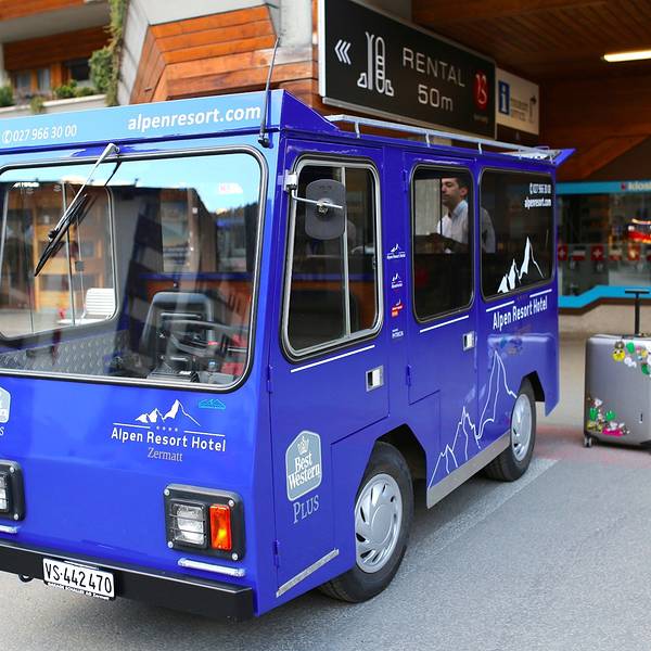 因为采尔马特禁止燃油车进入,所以不管出租车还是酒店的接送车,都是这样的电瓶车,哪怕是一些运货的...