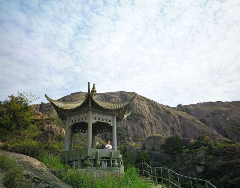 大罗山的寺院云集,其中以始建于晋,重建于唐贞元间的天柱寺最为有名,是浙南较为古老的寺院之一在大巴上歇息了一会儿之后,我们又来到了大罗山,一天爬两座山真的是厉害了。山景迷人自然不用多说,这里的每个景区都有着自己的与众不同特色和魅力,是自然景观与人文景观的完美结合大罗山的石头造型千奇百怪,...在大巴上歇息了一会儿之后,我们又来到了大罗山,一天爬两座山真的是厉害了。山景迷人自然不用多说,这里的每个景区都有着自己的与众不同特色和魅力,是自然景观与人文景观的完美结合大罗山的石头造型千奇百怪,或像蘑菇、或像青蛙、或像老鹰,每个石头都仿佛有生命,有感情,更有故事。大罗山的寺院云集,其中以始建于晋,重建于唐贞元间的天柱寺最为有名,是浙南较为古老的寺院之一。大罗山的幽谷深潭更是数不胜数,最有名的当属梅雨潭。梅雨瀑布从险峻的悬崖上倾斜而下,注入梅雨潭,溅起的点点水星恰似朵朵白梅纷舞,清凉的水气扑面而来,犹如置身于春夏之交的黄梅细雨之间。夕阳特别美,在这连绵起伏的山峦中,充满了韵味。 展开