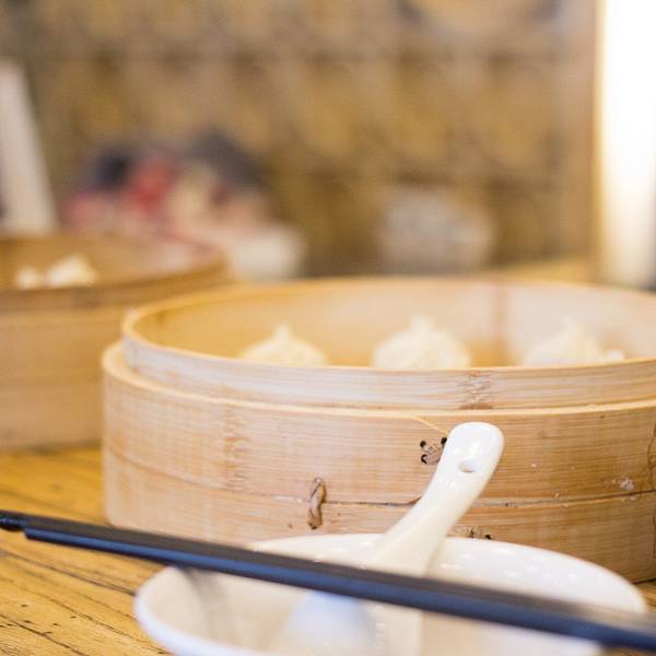 我们开吃啦 正巧我们到达的时间是午饭时分,当然要开始寻觅当地最具特色的美食。榨面,炒年糕,春饼,小笼包等都是嵊州最具特色的美食。而我们今天要品尝的是,嵊州小笼中的翘楚“越小笼”。嵊州特色小吃,来嵊州不吃小笼包,不能说真来过嵊州。刚刚出笼的小笼包子,肉馅的,白白胖胖,一团和气;豆腐馅的,则晶莹剔透,透过薄薄的皮子隐约能看到里面鲜嫩的馅儿。夹起来,蘸点醋或是辣椒酱,一口咬下去,皮韧、里软,满口生香。 最初的原因是嵊州的“嵊”字太生僻很多人不认识,早先外出做小笼包的人便写上了“杭州小笼包”招牌。"上有天堂,下有苏杭。"这大招牌还真引来了食客带来了好生意,人们纷纷效仿。于是,杭州小笼包就成了"嵊州小笼"代名词。嵊州有很多小笼包店,但比较出名是“越小笼”。 “越小笼”的装修风格。很好的融合了中式和西式的装修风格,复古的氛围下,你又可以发现很多现代摩登的设计元素,巧妙的用灯光和屏风调和的恰到好处。背景采用了一幅,越剧花旦生动表演的水墨画。花旦挥动着水袖,仿佛跃然纸上,欢迎着各位来宾,把嵊州越剧这一地方文化充分但又毫不突兀地展示给了大家。在大厅一角还偶然看到了影星杨恭如到访的照片,可见越小笼的名气早已名扬四海,既然来到嵊州,不来尝一尝小笼包,就太可惜了!