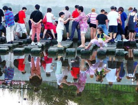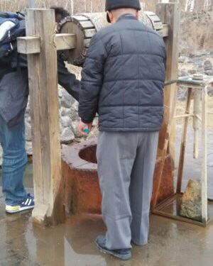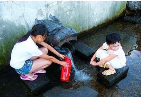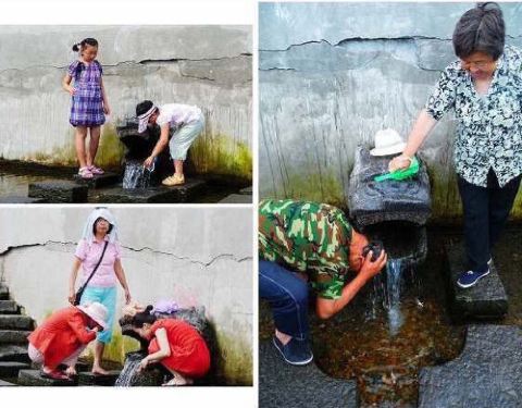 到这里洗面的人络绎不绝,洗完脸后,再用杯子接灌泉水喝下,也有用容器接灌泉水带走的
