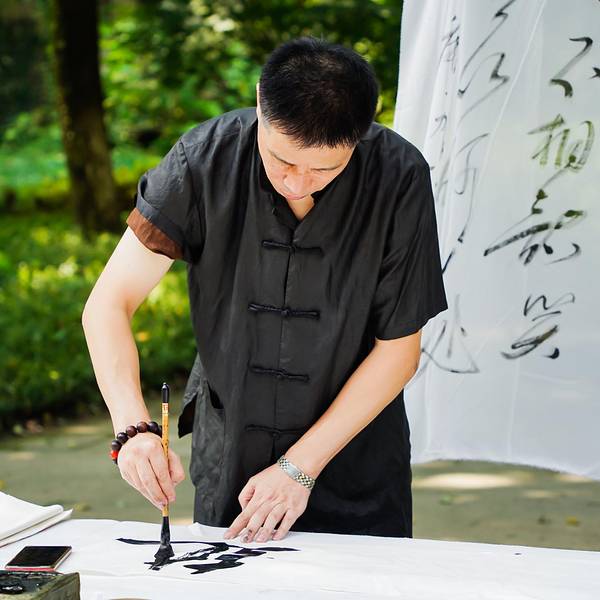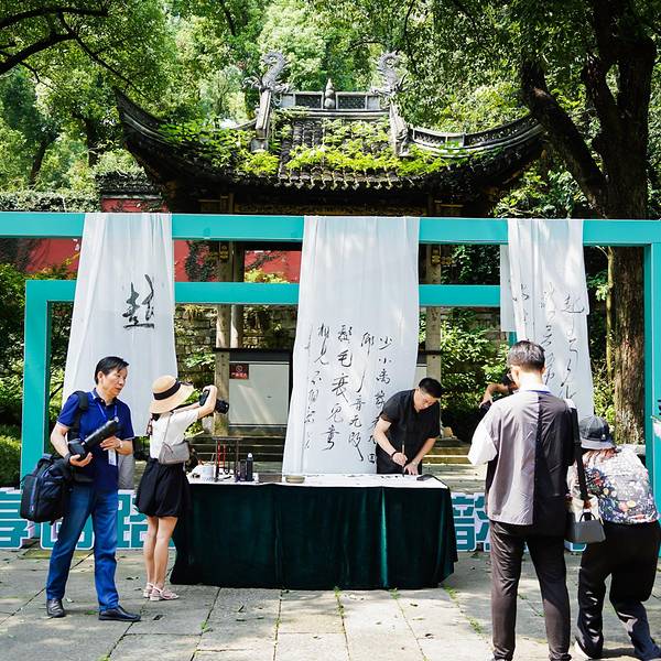那的那天正好有书法大师在作书法,欣赏了一番,赞叹文笔如此的好,羡慕。