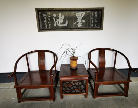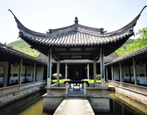 王右军祠位于绍兴兰亭景区内,始建于清康熙三十七年(1698年),同治八年(1896年)重修。飞檐回廊,古朴典雅。 祠中有池,池上建亭,亭桥相连,四周环廊,其结构相当罕见。中间“墨池”,估计出于王羲之“临池学...