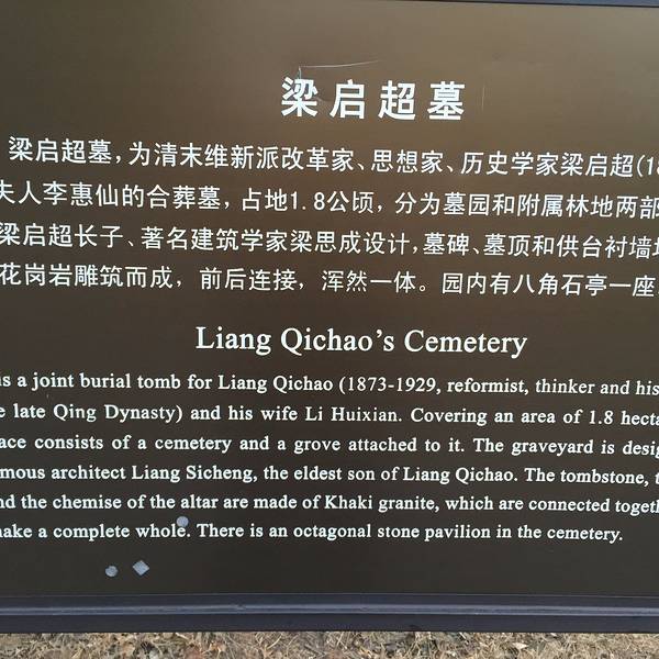 梁启超墓是梁启超家族墓园,梁启超、他的两位夫人、弟弟梁启雄还有三位儿子均葬于此地。