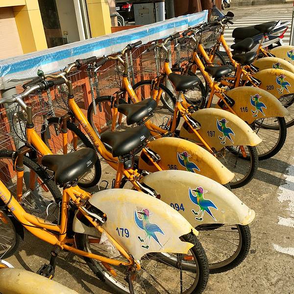 金门的出行主要靠机车和电动车,公车车等了好久才来,公交车上遇到一位大爷,大爷热情的询问我们从哪里过来的,告诉我们金门多发台风,路旁的树好多都是被台风吹倒的。金城车站有免费的自行车可以借,压一本通行证就可以了。金门的公共自行车比较高级,是可以变速的