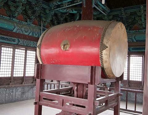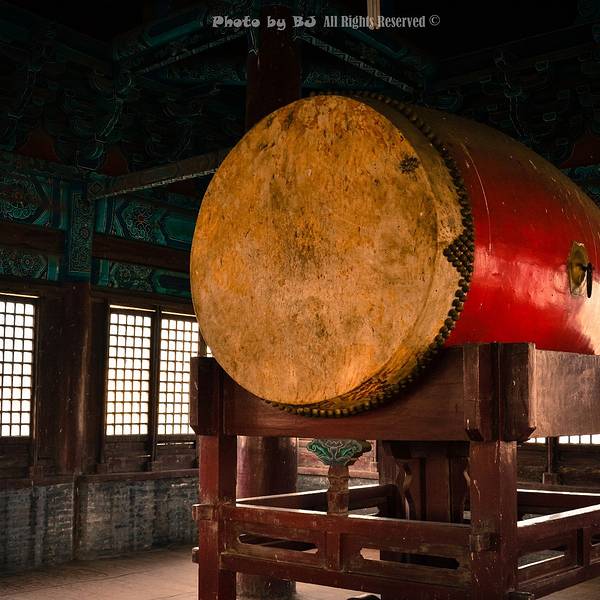 对的,就是被绑去瓦剌的明英宗在位的年号,不过正统五年,英宗还未远去呢,哈哈。鼓楼为重檐九脊歇山顶的高大建筑,如今从清远楼到镇朔楼再到拱极楼的这段街道已是步行街,漫步在古街之上,古城人民的现世生活形态,是否跟古代有所区别呢?镇朔楼上还有一块乾隆皇帝御笔的“神京屏瀚”的匾额。这是乾隆皇帝于1745年巡视塞北木兰围场,途经宣化时写下的,他的寓意是宣化即北京之屏障。楼内安置有80年代复制的大鼓一面。