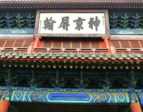 这样曾经的钟楼、鼓楼便重新矗立在了这座古城之中。镇朔楼上还有一块乾隆皇帝御笔的“神京屏瀚”的匾额