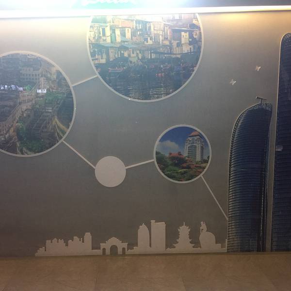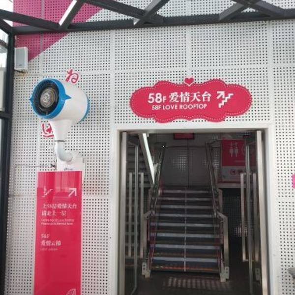 云上观光厅的入口是在两幢楼中间的,下到地下室再从地下室坐电梯上去的