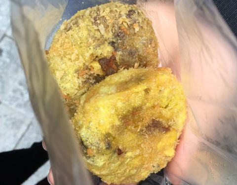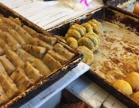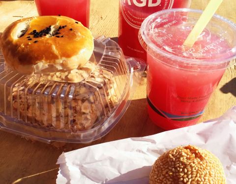 Early morning, one of the first shops open at the market. BBQ pork hum bao for breakfast, sesame ball for a teatime treat!