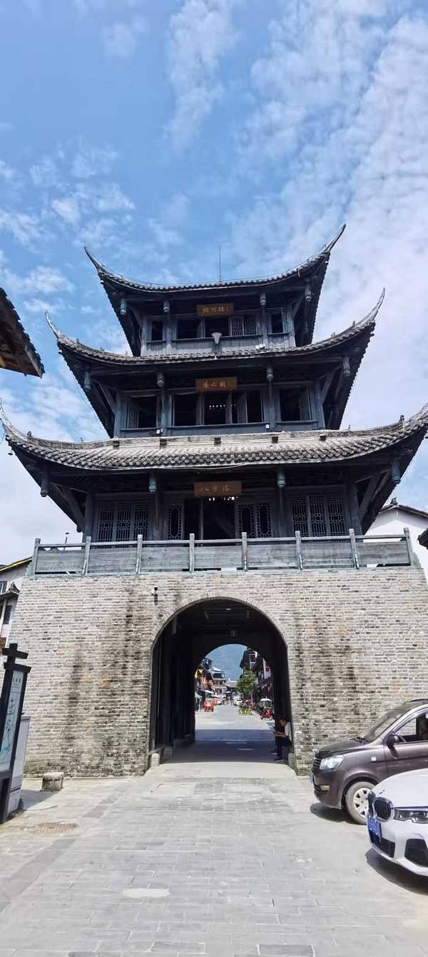 四面环山的古镇,高高的城墙上旌旗招展,仿制的古兵器屹立城墙,城外两条河沿着山脚绕过,非常壮观漂亮,不枉此行👍🏻👍🏻👍🏻👍🏻