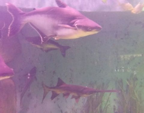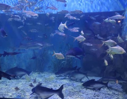 ...鸣叫声,三是河口不同区域的鱼类展示,有五个不容盐分的水族箱,可以近距离观看,有个鸭嘴鱼很有意思