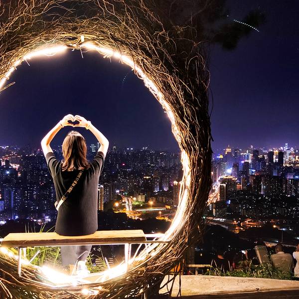 重庆唯一的一个夜景主题公园,也是观赏重庆夜景的新宠之地重庆唯一的一个夜景主题公园,也是观赏重庆夜景的新宠之地。站在观景台上,远远望去,层见叠出,万家灯火错落有致地点亮了夜空,就像一片高下井然、远近互衬的灯的海洋。