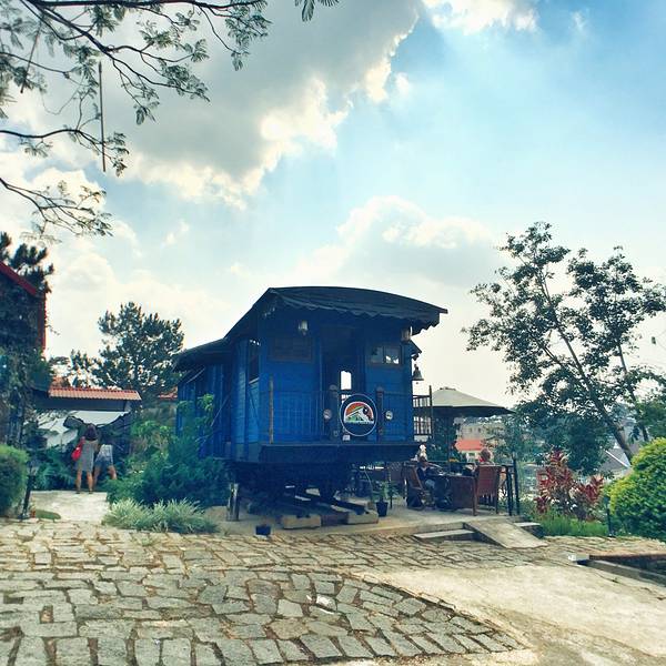 大叻火车餐厅(Dalat Train Café)的主体是一节蓝色的火车厢,这可是一节真的车厢,下面还铺着铁轨。 这个餐厅距离大叻旧火车站Ga Da Lat非常近,如果去火车站游览可以选择顺道过来吃东西。咖啡厅地处城中高地,露天的座位可以俯瞰山谷中五颜六色的房子,景色十分漂亮。不仅仅是一家咖啡店,可爱的小火车,美丽的风景,可以坐一下午。车厢内部用的全是木质家具,非常应景,让人感觉温暖;空间的利用也很好,足见其用心之处。餐厅主营越南菜、西餐和咖啡甜品。餐厅内饰简约又复古,墙上挂着的老照片以及古董让你仿佛回到了很久以前。喝完下午茶到Dalat Train Cafe外的乡村小路散散步,扑面而来是泥土的芳香,望着天空,望着游走的云朵,望着路边的景物,任思想海阔天空的奔驰,让疲惫的心在这片净地休憩。
