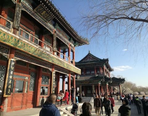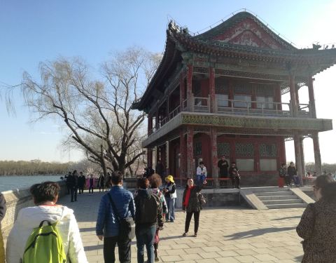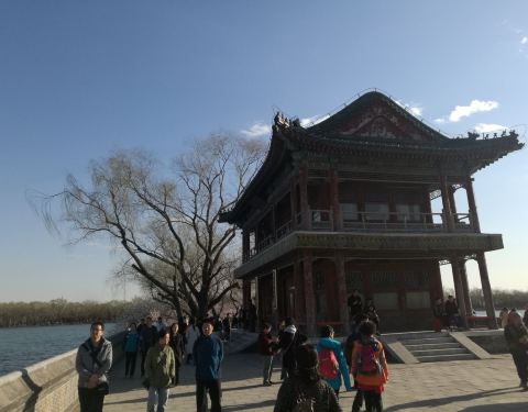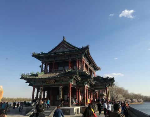 颐和园周边的园林与她形成一个整体,玉泉山的宝塔,亭亭玉立,微风吹来,盛开的荷花,飘来阵阵清香,像是一幅充满意境的国画,令人流连忘返。