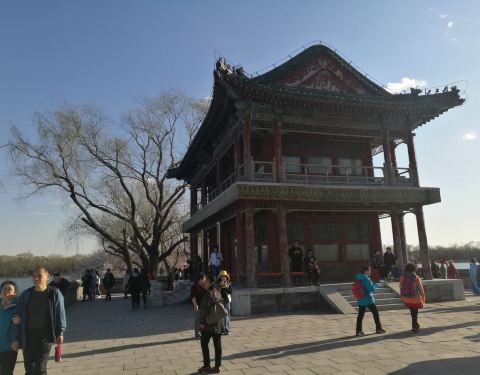 在长长的北京颐和园的西堤上,有一处著名的景点景明楼,观览景明楼,可于西堤之上,亦可于昆明湖周边,天气条件适合之时,远眺景明楼宛如仙境。