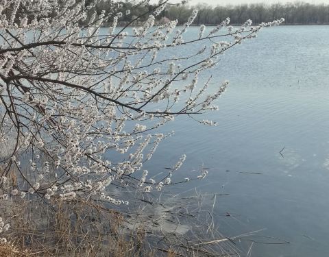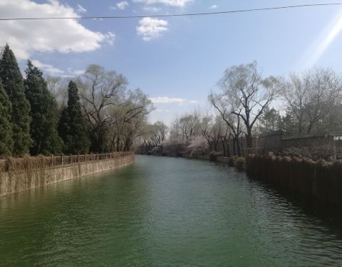北京西堤是乾隆皇帝命人仿照杭州西湖的西堤建造的,也有六座桥梁,连名字都一样,初春季节万物复苏,休闲了一冬天的山桃花,迎着和煦的春风盛开。