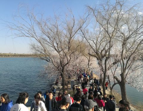 西堤是北京踏青最好的地方,每年春天这里的山桃花最先开放,人们脱去厚重的冬装,来到颐和园昆明湖的西堤,感受明媚的阳光和和煦的春风。