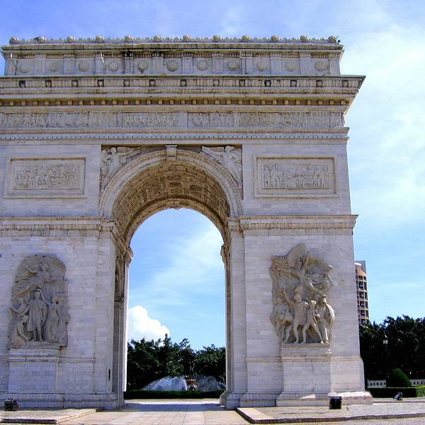 凯旋门正如其名,是一座迎接外出征战的军队凯旋的大门。它是现今世界上最大的一座圆拱门。在凯旋门两面门墩的墙面上,有4组以战争为题材的大型浮雕。巴黎市区12条大街都以凯旋门为中心,向四周放射,气势磅礴,为欧洲大城市的设计典范。