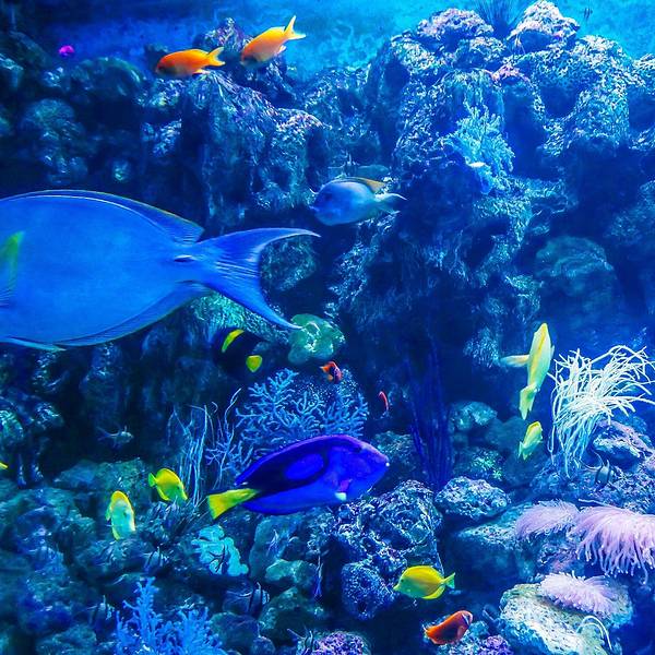 亚洲最大展示珊瑚礁生物群为主的海洋生老虎滩珊瑚馆,展示珊瑚礁生物群200余种、3000多个。通过声、光、影像等现代的高科技手段,完美地还原了海底世界的神奇与美丽。海底实验室区域有漩涡鱼、电子像册、潜望镜、电子显微镜、真空水槽、水下音乐会等游客参与性项目,使您在不知不觉中学到有关海洋的专业知识,感受海洋世界的神秘莫测,领略现代高科技展示方法的奇妙。表演场中,还有精彩的水中芭蕾、美人鱼表演、水下梦幻婚礼等项表演,游客也可穿上潜水服与鱼儿共游,亲身体验一下潜水的乐趣