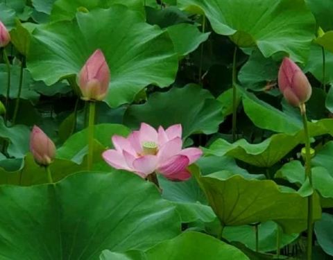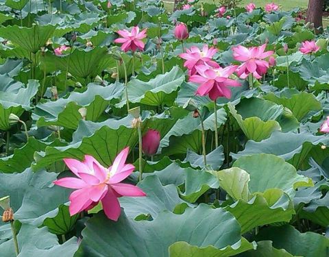 这首诗说的是西湖的荷花,可是在武汉的东湖同样适用。 大片大片的绿叶接天莲叶无穷碧,映日荷花别样红。这首诗说的是西湖的荷花,可是在武汉的东湖同样适用。 大片大片的绿叶。一朵朵绽开的荷花在湖面上摇曳。