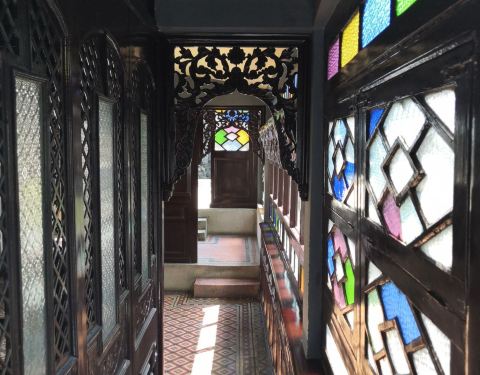真趣亭上描金奢华,花屏上雕刻工艺复杂,坐在亭子的吴王靠上,极其舒服,古人是如何掌握人体工程学的