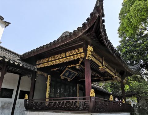 ...州四大园林之一,真趣亭是狮子林里的一处景点,“真趣”两字是清朝乾隆皇帝的御笔,金字牌匾非常气派