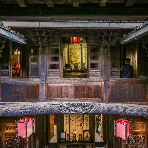 从江湾镇沿省道201,在镇头村右拐前行4.5公里,到达篁岭游客服务中心。