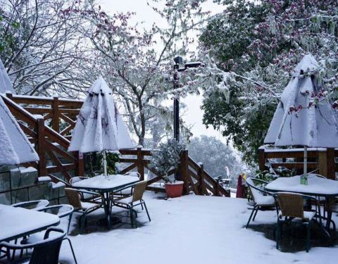 碧綠神木雖是中橫公路上的小景點.但確是生命的見證-神木曾遭雷劈頭.在幾年的日子裡.大家以為他枯死了.但強大的他現又碧綠一片。下雪的他披上白衣好美