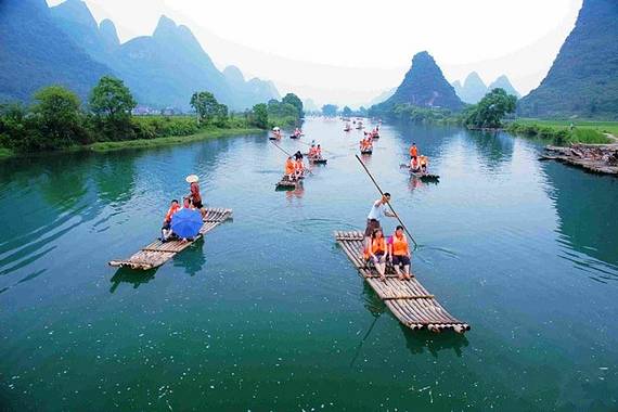 桂林因独特的喀斯特地貌,在这里漂流会感到更惊险过瘾。在水急滩险的崇山峻岭中激流勇进,尖叫过后,缓下心感受绿意盎然的山水墨画,那是多么的写意乎!