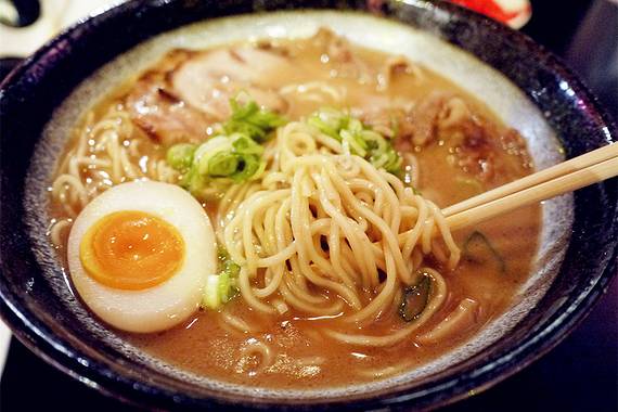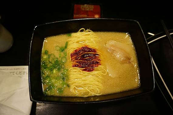 众所周知的博多名特产的王冠。味道醇厚的猪骨白色浓汤配上弹性嚼劲的细面是它的一大特征。再加上切得极细的葱,和薄薄的猪肉片来一起品尝。此外,根据个人喜好所添加的红姜,芝麻或胡椒等酱料亦和汤面口感一致。因是细面,最好是在发胀之前一口气吃完。剩下的汤内还可再免费添加面条的[替玉]服务也是只有[博多拉面]才有的一大特色。最适合作为下酒的最后一品料理,是会让人上瘾的美味。