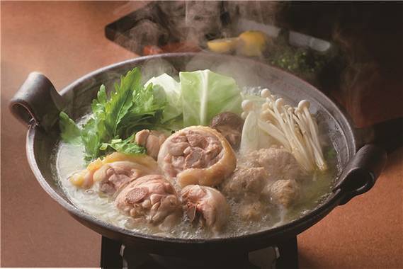 有着大约100年历史的福冈的本土料理。带骨的鸡肉放入熬入味的汤里吃的火锅料理。吸收了鸡肉的鲜美的汤汁味道清爽,即使就这么喝也回味无穷。喝习惯的人,开始,只是一边逐步加盐,一边仅品尝汤汁,之后才动筷伸向鸡肉,蔬菜等,最后用泡饭来收尾。
