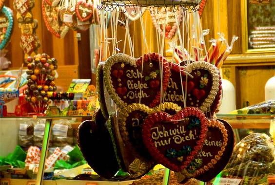 德国姜饼是一种介乎于蛋糕与饼干之间的小点心,也是德国的传统圣诞节糕饼。德式姜饼的主要原料包括了蜂蜜、香料、坚果与糖渍的水果干等,口味上根据配方与做法的不同,从甜味到带有香辛料气味的辣味姜饼都有。根据主要的配方不同,德式姜饼有时又被称呼为蜂蜜饼(Honigkuchen)或椒味饼(Pfefferkuchen)。姜饼的形状五花八门,最常见的是圆饼状,但是如果你来柏林的时间刚刚好赶上圣诞节,那么你幸运的可以买到平时买不到的各式各样的精美姜饼,每个都像艺术品一样,不但可以吃还可以收藏。因为在圣诞节人们买姜饼赠与亲戚朋友作为节日贺礼是非常流行的习俗之一。德国最流行是写有“Ich Liebe Dich”的装饰性姜饼,就是“我爱你”的意思,买来送给他(她)最合适了。