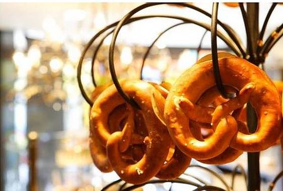 德国人以面包作为主食的历史相当悠久,而德国南部巴伐利亚的传统面包烤制手艺更是当地人的骄傲。慕尼黑布满了大大小小连锁或独立经营的面包房。其中经典的慕尼黑碱水扭结面包(Brezel)早已几乎变为巴伐利亚的标志。它在制作过成功被涂抹了一种会腐蚀皮肤的物质,使得面包在高温下呈现完美的香脆程度和颜色,这也是巴伐利亚扭结面包的独门秘方。此外,著名德国黑面包,德式香肠(或熏鱼)奶酪小面包(Bröchen),黑森林蛋糕,苹果蛋糕,都是颇受当地和外国游客喜爱特色美食。