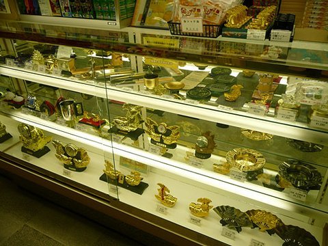 金鯱是名古屋代表性建筑名古屋城天守阁上的一对守护神,用纯金打造,在 阳光下总是闪闪发光,传说拥有它会带来金运。名古屋人喜欢黄金之类的贵 重金属也是由此而来。到名古屋旅游买几个金鯱装饰物或点心,一定会如传 说一样为购买的人带来金运。金鯱装饰物的做工也十分精细,如同真正用黄 金打造的,非常适合当成礼品。