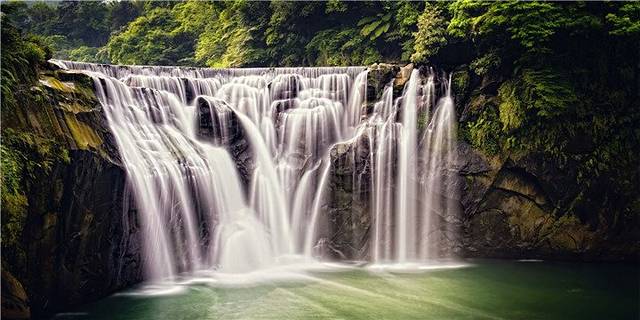 沿着十分车站悠闲地向前走,半小时后便可以看到十分瀑布。十分瀑布是垂帘型的瀑布,与北美洲的尼加拉瀑布相似,故有台湾尼加拉瀑布之称。隆隆的水声不断冲洗着岩石,使整个瀑布看上去气势恢宏,十分壮观,让人止不住驻足欣赏。尤其有趣的是,当天气晴朗之际,若刚好有阳光照射,瀑布上还会出现一道彩虹,令人叹为观止,所以十分瀑布也有“彩虹渊”的美称。