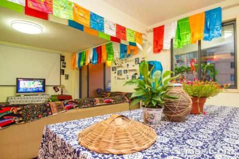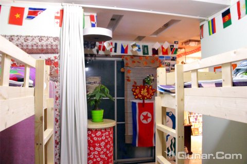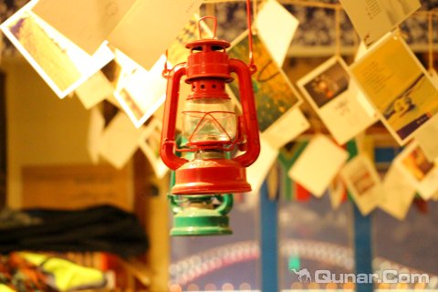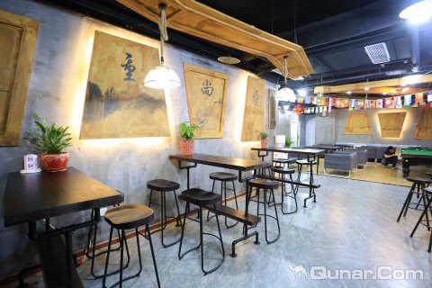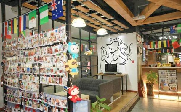 青旅的装饰十分用心,除了挂着的国旗,还有墙上可爱的涂鸦,精细的工笔画,甚至还有古诗词。大厅设计为一个酒吧,有一个半圆形的吧台。让人惊喜的是这里的酒水价格和超市一样!