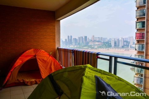 从客厅阳台就可以看到美美哒的重庆夜景~旅舍附设棋牌室、茶室、厨具齐备的厨房,休闲娱乐和吃饭也不成问题啦。