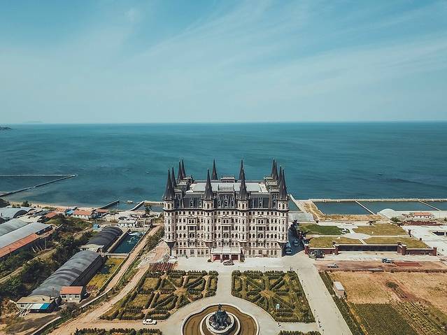 是一座临海的巨大巴洛克风格欧洲古典城堡建筑群