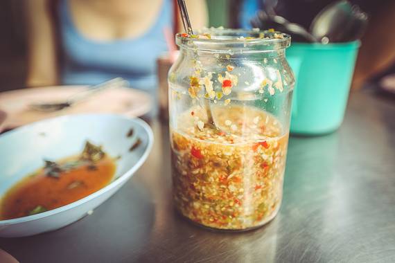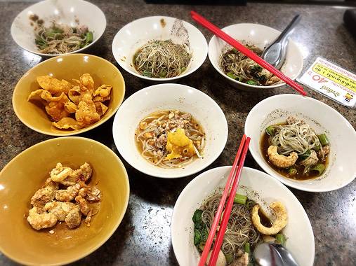 价格实惠,基本每个摊位前都还会摆放泰式调味品供食客添加,整个场子干净热闹而有序。