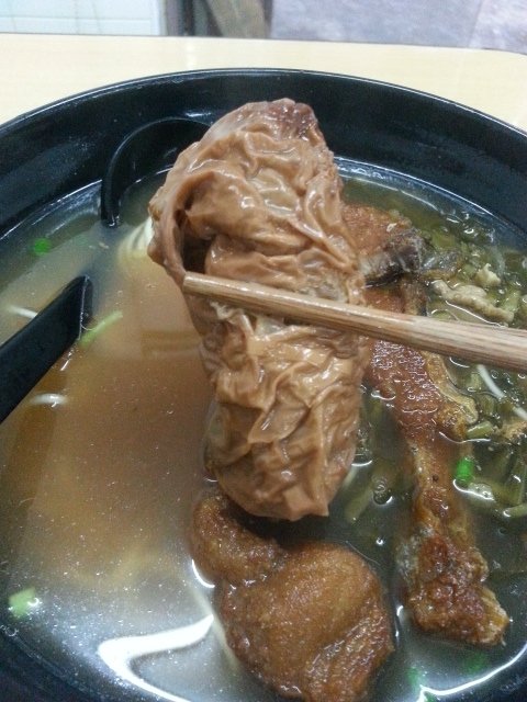 上海人对大肠面颇为情有独钟,爱之香滑,喜之筋软。生意火爆的大肠面馆店面有些破旧,是父母辈就开始追捧的老面店,经常大排长龙。这家的大肠洗得很干净,不腥不膻;口感软嫩弹牙,油而不腻,咬上一口汤汁满嘴。料多量足,高性价比。