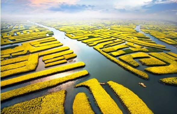 江西婺源是全国出名的油菜花观赏地,这里的油菜花田不是平地上的,而是沿着山坡一层一层的梯田,到了3、4月份油菜花开,站在山顶的观景台上,可以俯瞰到婺源田园风光最优美的一面。